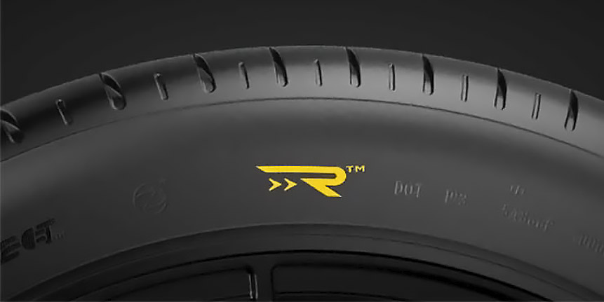 На боковинах шин Pirelli появится новый символ — буква «R» вытянутой формы с двумя небольшими стрелками под ней, свидетельствующий о применении новой технологии RunForward.